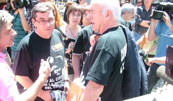 Los parlamentarios de IU Cayo Lara, José Luis Centella, Joan Josep Nuet, Gaspar Llamazares, Concepción de las Heras, Ricardo Sixto y Caridad García conversaron durante varios minutos con algunas de estas personas, en buena parte trabajadores públicos de distintos centros administrativos cercanos a la Cámara Baja. También atendieron a los medios de comunicación que requirieron su opinión sobre lo que estaba pasando, sobre los incidentes ocurridos en la manifestación de los mineros poco más de una hora antes o sobre el debate en el Congreso.