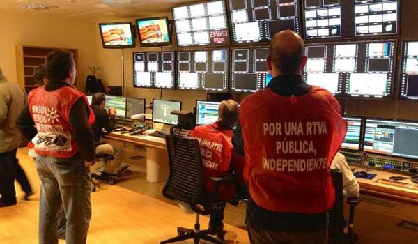 Canal Sur, RTVA, paró a las doce y dejó de emitir, con un rótulo que hablaba de su respuesta a la huelga convocada por la Cumbre Social y los sindicatos de clase.»Huelga general respaldada por el comité intercentros de RTVA». Sigue igual a las 7,3o.
