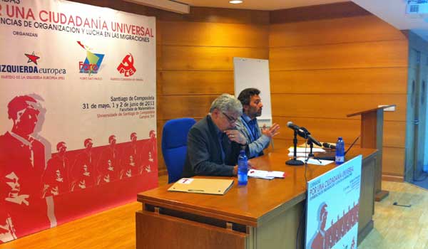 Las jornadas «Por una ciudadanía universal. Experiencias de organización y lucha en las migraciones”, comenzaron este viernes en Santiago de Compostela, con la participación de representaciones de izquierdas de varios países. La mesa de presentación estuvo a cargo de Mauricio Valiente, secretario de migraciones del Partido Comunista de España (PCE), y Obey Ament, miembro del Partido Comunista Francés y coordinador del grupo para Latinoamérica del Partido de la Izquierda Europea (PIE).