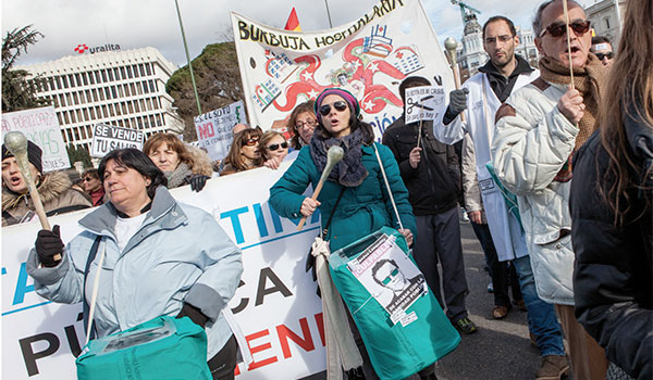 El discurso neoliberal se alía con la cultura empresarial y política heredera de la Dictadura, por desgracia muy presente en comunidades como la de Madrid. La clásica hostilidad empresarial y de la derecha madrileña frente al conflicto social, reforzado por la retórica franquista que define a los huelguistas como agitadores liberados sindicales e individuos débiles coaccionados por violentos piquetes.