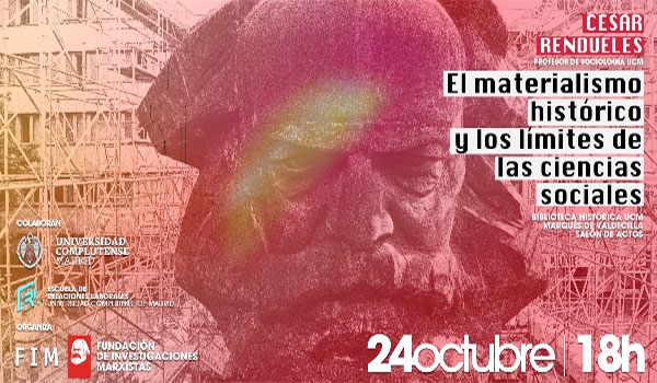 El próximo 24 de Octubre tendrá lugar la Conferencia de Apertura del Curso Académico de la FIM, a cargo de César Rendueles, Profesor de Sociología de la UCM, conferencia que tendrá por nombre «El materialismo histórico y los límites de las ciencias sociales».