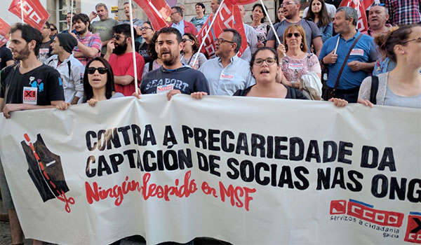 Las captadoras y captadores de socias de Médicos Sin Fronteras (MSF) llevan más de un año enfrentándose a esta ONG y su patronal por las condiciones abusivas que sufren en su trabajo. Es por ello que desde esta última semana de junio, un grupo de trabajadoras acampa frente a la sede de la empresa en Galicia para denunciar, por un lado, los abusos laborales que se están perpetrando a la plantilla y, por otro, la falta de diálogo de la multinacional humanitaria con esta.
