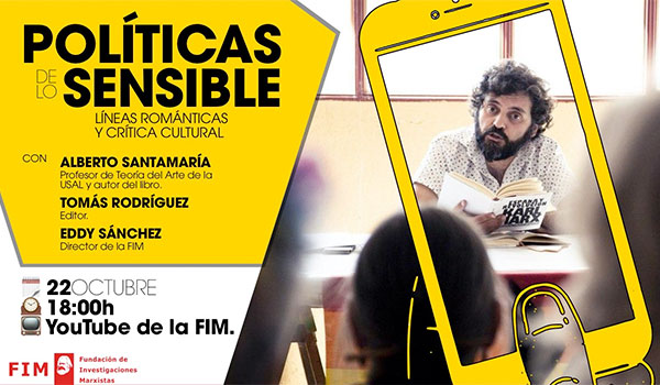 El próximo 22 de octubre mantendremos un debate con el poeta, ensayista, filósofo y profesor de Teoría del Arte de la USAL, Alberto Santamaría, en torno a su último libro “Políticas de lo sensible”.