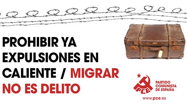 Por todo ello, el PCE reclama el abandono inmediato de este tipo de prácticas y un giro en la política migratoria, que profundice en la extensión las medidas sociales que ha venido adoptando el Gobierno, lo que supondría una oportunidad para construir avanzar en derechos y libertades frente a la ofensiva ultraconservadora. No adoptar una posición coherente conlleva el grave riesgo de dar alas al fascismo y de reforzar la campaña xenófoba de las derechas, que tenemos que afrontar desde la movilización social y políticas públicas coherentes.