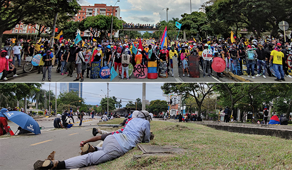 Civiles armados con fusiles AK, escoltados por la policía, disparando contra manifestantes en Cali. El horror empezó ya en la mañana y no hizo sino aumentar a medida que avanzó la jornada del 28 de mayo, que estaba llamada a ser un día de movilizaciones culturales, artísticas, festivas, para conmemorar el mes que cumple el Paro Nacional, la mayor movilización social sostenida de la historia de Colombia.