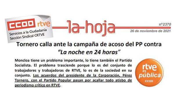 Moncloa tiene un problema importante, lo tiene también el Partido Socialista. El problema trasciende porque lo es del conjunto de trabajadores y trabajadoras de RTVE, lo es de la sociedad en su conjunto. Los acuerdos del presidente de la Corporación, Pérez Tornero, con el Partido Popular pasan por acallar todo atisbo de periodismo crítico en RTVE.