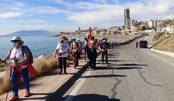 La otra internacional, trasladada por la compañera francesa Chantal, nos ha trasmitido un saludo de la Asociación de Viajes Memorialistas de la República Española y de los Antiguos Guerrilleros Españoles en Francia. Son 6 mujeres francesas incorporadas a la marcha, cuyos padres y familiares mayores participaron en la Desbandá mientras otros eran asesinados por las fuerzas fascistas, como el tío de una de ellas: Juan Venegas, alcalde republicano de Salobreña.