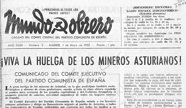 Esta primavera de 2022 se cumplen 60 años de la primera oleada de las huelgas de 1962, que comenzaron el 7 de abril por el despido a un grupo de picadores del grupo Nicolasa de la fábrica de Mieres, serían la chispa que dio comienzo a una huelga que marcaría un antes y un después en el movimiento obrero y en la historia de la lucha de la Dictadura Franquista. Lo que podría haber sido considerado un movimiento espontáneo, resultó en una gran movilización obrera alentada por los comunistas y otros sectores antifranquistas, en especial por cristianos progresistas. El papel del PCE y su militancia fue fundamental en la extensión, propaganda y organización de las huelgas. Tras años de dura persecución, los y las comunistas nuevamente, fueron quienes vieron en esta movilización una forma de desarrollar no solo la oposición al régimen, si no la unión con otros sectores y el desarrollo de Comisiones Obreras. El papel de comerciantes, iglesia, intelectuales e incluso personas afines al régimen fue fundamental en el sostenimiento de las huelgas en las duras condiciones de represión a la que la Dictadura trató a los huelguistas.