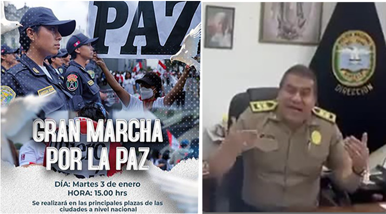 La Policía Nacional del Perú (PNP), a través de sus redes sociales, está convocando la “Gran Marcha por la Paz” este martes, 3 de enero, en “las principales plazas a nivel nacional”.