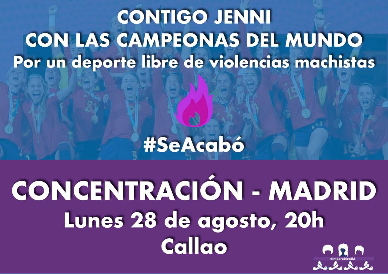 Ante todo esto, el movimiento feminista de Madrid, a través de la comisión 8-M de la región, convoca una concentración en apoyo a las campeonas del mundo este lunes 28 a las 20h en Callao. Una de sus portavoces nos ha trasladado que el movimiento feminista pretende llevar el apoyo que desde el principio han mostrado a las jugadoras a las calles. Igual que hacían las jugadoras en su comunicado a través del sindicato Futpro, pretenden reclamar soluciones estructurales en la federación que generen un deporte libre del machismo. «Para ello se tienen que escuchar a las jugadoras que son las que han estado sufriendo todos estos años».